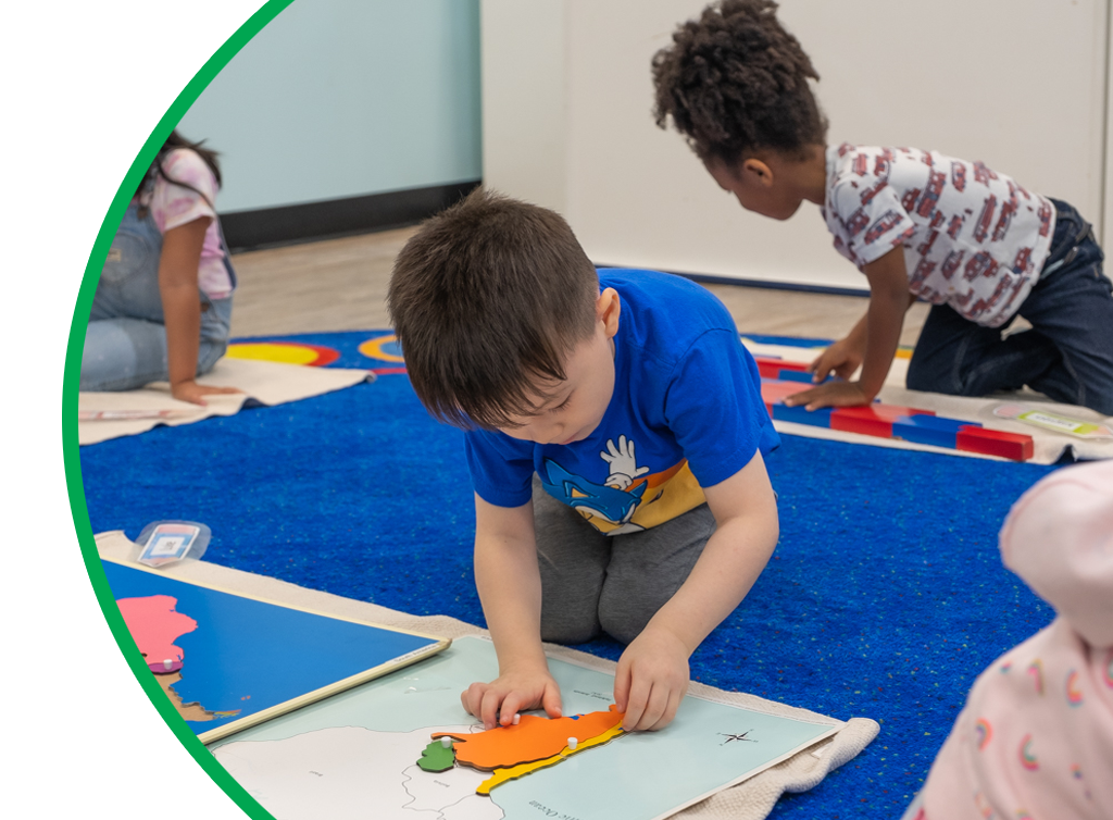 Children are encouraged to develop good work habits and share in the responsibility of their learning. They work at their own pace and on their own level, with guidance from Montessori teachers.